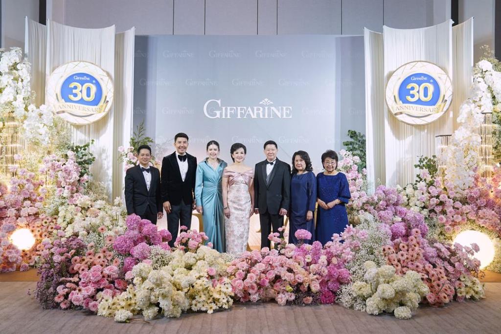กิฟฟารีนแบรนด์เพื่อสุขภาพและความงามที่ยืนหนึ่งในใจคนไทย โดย พญ.นลินี ไพบูลย์ ประธานกรรมการ บริษัท กิฟฟารีน สกายไลน์ ยูนิตี้ จำกัด จัดงาน Giffarine 30th Anniversary “Gorgeous Gala Dinner” เฉลิมฉลองในโอกาสที่กิฟฟารีนครบรอบ 30 ปี และฉลองผลประกอบการรวมตั้งแต่ก่อตั้งบริษัทกว่า 114,764 ล้านบาท เพื่อตอกย้ำความมั่นใจในธุรกิจและคุณภาพสินค้าแก่ผู้บริโภค โดยมีน.ท.นพ. จักรพงศ์ ไพบูลย์ รองประธานกรรมการ บริษัท กิฟฟารีน สกายไลน์ ยูนิตี้ จำกัด ,พญ.ใจทิพย์ ไพบูลย์ รองประธานกรรมการ บริษัท กิฟฟารีน สกายไลน์ แลบบอราทอรี่ แอนด์ เฮลท์แคร์ จำกัด ,คุณพงศ์พสุ อุณาพรหม ,คุณเอกกมล บุญญาภิสันท์ ,พญ.สิริอรญ์ สุกาญจนพงษ์ และ ดร.นารี สุทธปรีดา พร้อมผู้บริหารระดับสูงร่วมแสดงความยินดีคับคั่ง ณ โรงแรมโฟร์ ซีซั่นส์ กรุงเทพฯ ริมแม่น้ำเจ้าพระยา
