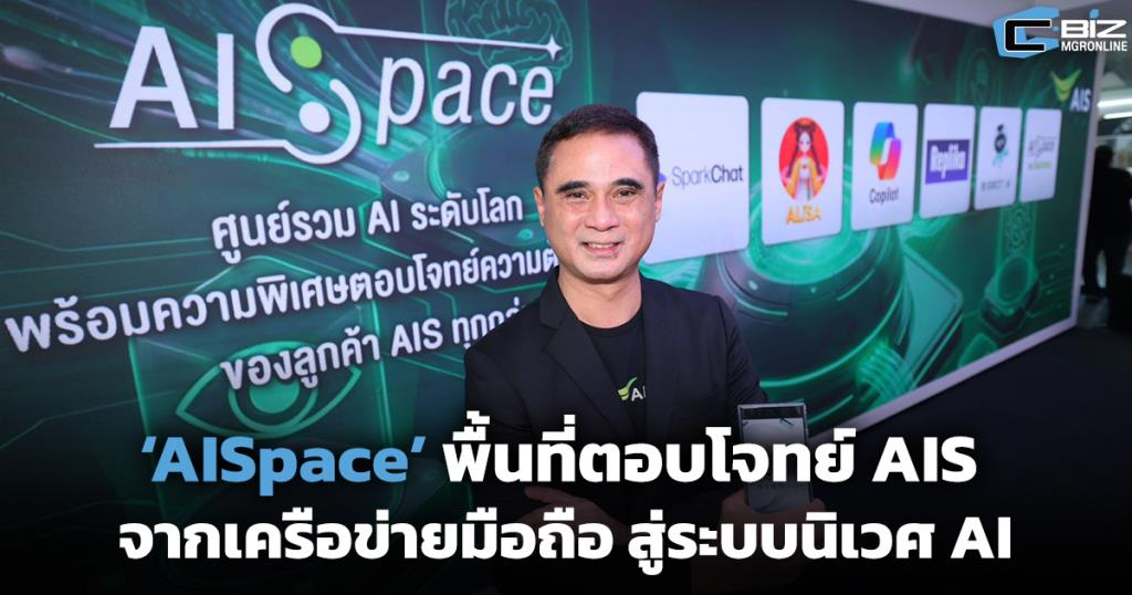 ‘AISpace’ พื้นที่ตอบโจทย์ AIS จากเครือข่ายมือถือ สู่ระบบนิเวศขับเคลื่อนด้วย AI เผยแพร่: 11 ก.พ. 2569 16:40 ปรับปรุง: 11 ก.พ. 2569 17:12 โดย: ผู้จัดการออนไลน์ นับตั้งแต่การประกาศวิสัยทัศน์ของ AIS ในการเปลี่ยนผ่านจากผู้ให้บริการเครือข่ายโทรศัพท์มือถือ เมื่อ 4 ปีที่ผ่านมา สู่การเป็น “Cognitive Tech-Co” ผู้ให้บริการโครงสร้างพื้นฐานดิจิทัลที่ขับเคลื่อนด้วย AI ในปีที่ผ่านมา ได้แสดงให้เห็นถึง รายละเอียด... AIS