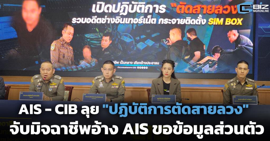AIS - CIB ลุย "ปฏิบัติการตัดสายลวง" จับมิจฉาชีพอ้าง AIS ขอข้อมูลส่วนตัว เผยแพร่: 24 ก.พ. 2569 16:55 ปรับปรุง: 24 ก.พ. 2569 16:55 โดย: ผู้จัดการออนไลน์ AIS เดินหน้าร่วมมือกับกองบัญชาการตำรวจสอบสวนกลาง (CIB) ป้องกันและปราบปรามอาชญากรรมทางเทคโนโลยี แถลงผลการติดตามจับกุมผู้ต้องหาที่ก่อเหตุแอบอ้างเป็นพนักงานบริษัทโทรคมนาคม หลอกลวงประชาชนให้โอนเงินโดยอ้างว่าเกี่ยวข้องกับคดีฟอกเงิน สร้ รายละเอียด... AIS