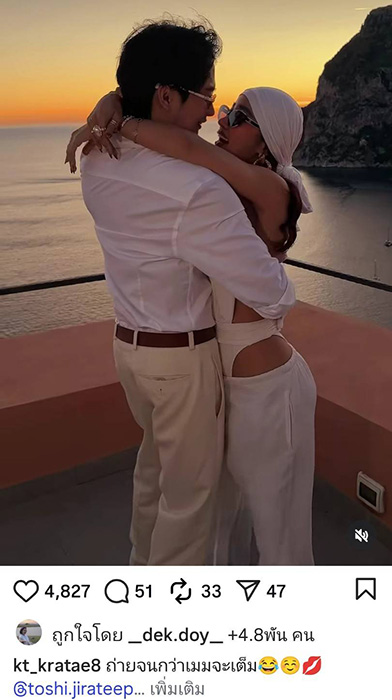 ภาพที่เจ้าตัวโพสต์มีทั้งมุมหน้าตรงอวดเอวเอส และมุมโพสต์ท่าหันหลังโชว์บั้นท้ายสุดเฟิร์ม ท่ามกลางฉากหลังที่เป็นวิวทะเลสีครามและแสงพระอาทิตย์ตกดินสุดโรแมนติก ซึ่งเจ้าตัวได้ระบุพิกัดเกาะคาปรี (Capri, Italy) ที่ขึ้นชื่อว่าเป็นสวรรค์ของนักท่องเที่ยวทั่วโลก