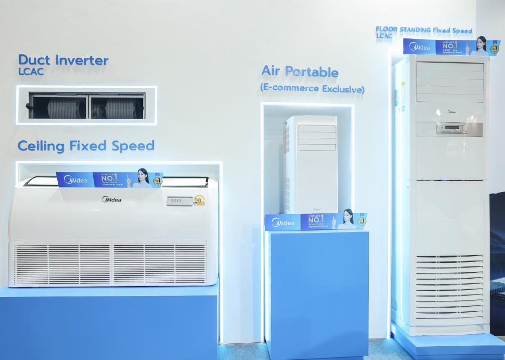 ยิ่งไปกว่านี้ ไมเดียมีผลิตภัณฑ์เครื่องปรับอากาศครอบคลุม ทั้งแอร์ติดผนังสำหรับที่อยู่อาศัย รวมถึงระบบแอร์เชิงพาณิชย์และอาคารขนาดใหญ่ พร้อมการรับประกันที่สร้างความมั่นใจให้ผู้บริโภค มาจัดแสดงเป็นจำนวนมาก อาทิ รุ่นเด่นอย่าง mPro Easy Inverter ที่มาพร้อม Air magic เทคโนโลยีแผ่นกรอง 2 ชั้น เพื่ออากาศที่บริสุทธิ์ สดชื่น หรือ Numen Series, Celest Series ที่มาพร้อมเทคโนโลยี Smart Control สั่งงานผ่าน Wi-Fi และระบบ AI ECOMASTER ช่วยประหยัดพลังงานอย่างชาญฉลาด เสริมด้วย AI Humidity Control ควบคุมความชื้นอัตโนมัติในช่วง 40%–70% RH ด้วย AI Algorithm ปรับพัดลมและกำลังความเย็นตามสภาพแวดล้อมจริงเพื่ออากาศที่สมดุลและมีเสถียรภาพ จาก Chione Series และความคุ้มค่า เย็นไวใน Tornado Easy (Fixed Speed) รวมถึงนวัตกรรมเฉพาะทางอย่าง Portable AC MPA และ One Way Cassette ที่ตอบโจทย์ทุกไลฟ์สไตล์การใช้งาน ตอกย้ำภาพผู้นำด้านเครื่องใช้ไฟฟ้าที่ผสานเทคโนโลยีล้ำสมัย ความประหยัด และดีไซน์เข้าด้วยกันอย่างลงตัว ทั้งนี้ ในการรับประกันสินค้า ถือว่าครอบคลุมทุกโซลูชัน ได้แก่