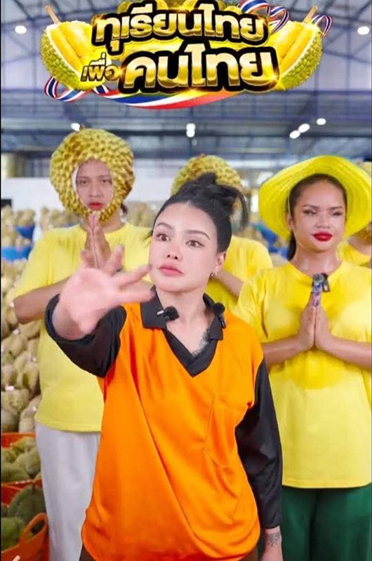 กราบเท้าทุกคน การสื่อสารของตนคืออยากให้พี่น้องชาวไทยได้รับรู้ว่าเกษตรกรกำลังลำบาก ปีนี้ฝนตกน้อย ทุเรียนออกเยอะ ถ้าทุกคนสนับสนุนทุเรียน ประเทศไทยจะพัฒนาไปได้อีกเยอะ