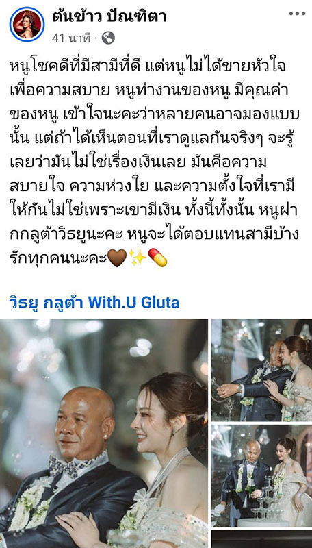 ดรามาผัวแก่-ผัวรวย “ต้นข้าว มิสแกรนด์” เปิดใจแต่ง “บังมัด” รักล้วนๆ ขอบคุณที่เลือกหนู! (คลิป) เผยแพร่: 24 ก.พ. 2569 13:43 ปรับปรุง: 24 ก.พ. 2569 13:43 โดย: ผู้จัดการออนไลน์ เขาดูแลหนูดีเหมือนเพชร ไม่ใช่ก้อนกรวด! “ต้นข้าว” เปิดใจแต่ง “บังมัด” ท่ามกลางดรามาผัวแก่-ผัวรวย และเงินๆ ทองๆ ยันเกิดจากความรักล้วนๆ พร้อมขอบคุณบังมัดที่เลือกเป็นคู่ชีวิต รายละเอียด... ต้นข้าว มิสแกรนด์ บังมัด คลองตัน