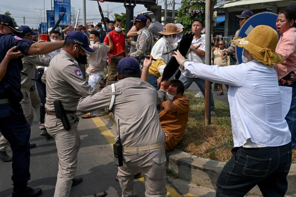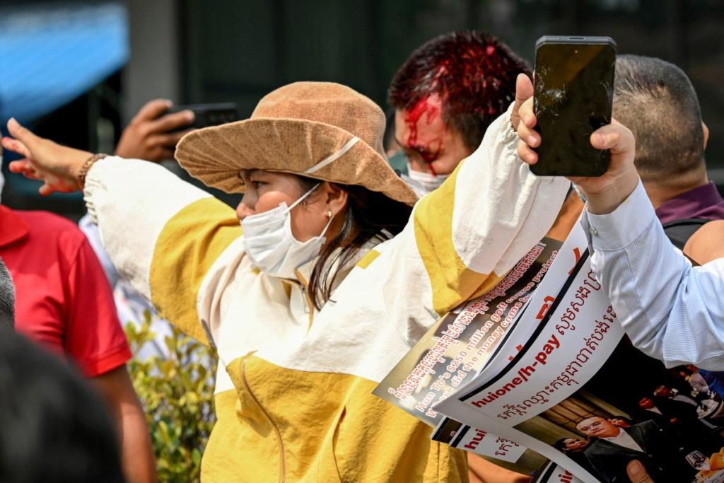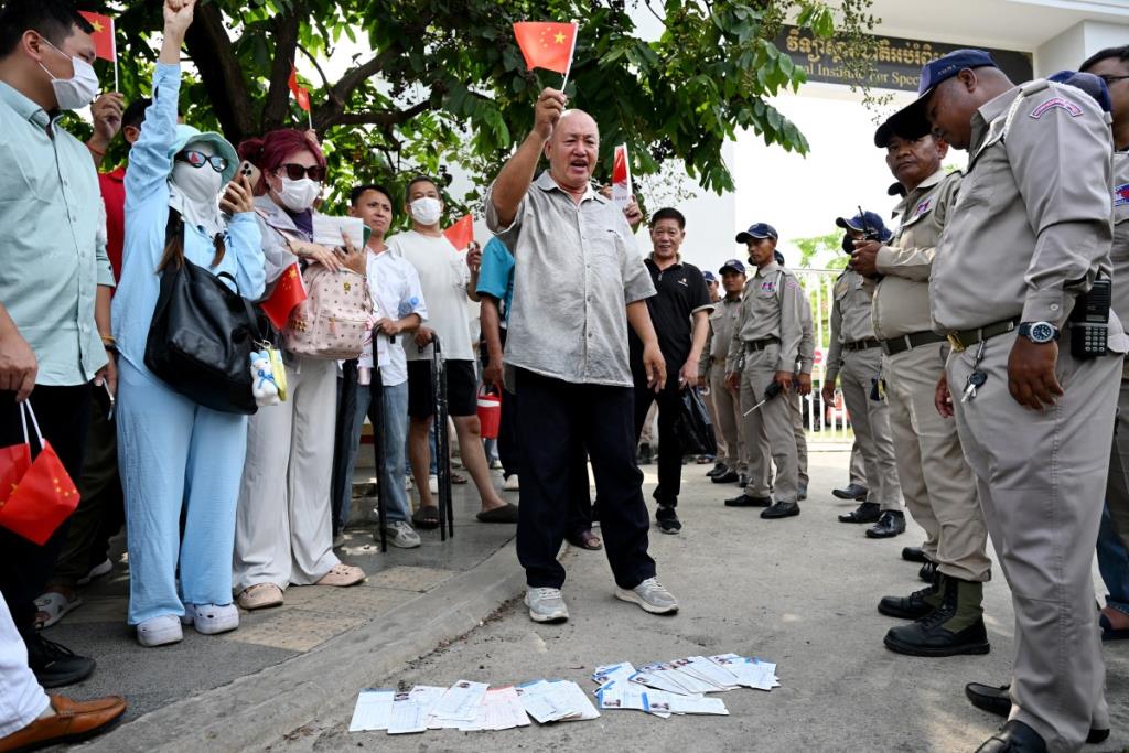 เอเอฟพี - ชาวจีนหลายสิบคนโบกธงชาติของตนเองขณะชุมนุมประท้วงอยู่หน้าธนาคารแห่งชาติของกัมพูชาวันนี้ (27) เรียกร้องให้ปลดล็อกบัญชีที่พวกเขาเปิดไว้กับบริษัทบริการทางการเงินที่เชื่อมโยงกับการฉ้อโกงทางไซเบอร์