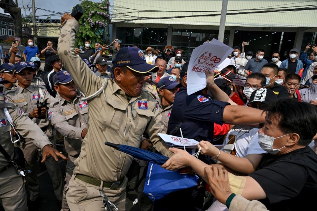 ตำรวจกล่าวว่าพวกเขาได้นำการชุมนุมของผู้ประท้วงชาวกัมพูชาและชาวจีนกว่า 100 คน ที่ได้ปิดกั้นถนนอย่างผิดกฎหมายและก่อความรุนแรงเกี่ยวกับปัญหาของธนาคาร Huione และ H Pay หน้าธนาคารแห่งชาติเมื่อวันที่ 27 เม.ย. เวลา 7.30 น.ในกรุงพนมเปญ