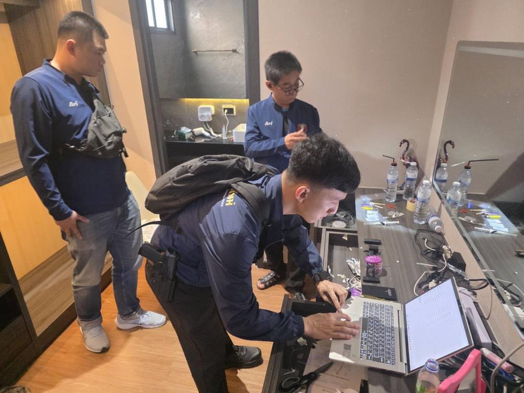 พบนายคริส (ขอสงวนนามสกุล) อายุ 41 ปี นักธุรกิจหนุ่มเจ้าของบ้าน และพบโทรศัพท์มือถือ ยี่ห้อ iPhone 16 Pro สีขาว จำนวน 1 เครื่อง โทรศัพท์มือถือ ยี่ห้อ Vivo Y29 สีขาว จำนวน 1 เครื่อง คอมพิวเตอร์โน้ตบุ๊ค ยี่ห้อ HP สีเทา จำนวน 1 เครื่องกล้องวงจรปิดขนาดเล็กชนิดส่งสัญญาณภาพระยะไกล จำนวน 11 ตัว พร้อมอุปกรณ์ส่วนควบ- คลิปและภาพผู้หญิงเข้าห้องน้ำอีกจำนวนมาก