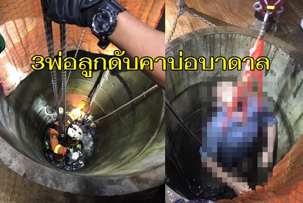สุดสลดอีก! สามพ่อลูกชัยภูมิลงซ่อมบ่อบาดาลกลางทุ่ง ขาดอากาศหายใจกอดคอดับคาก้นบ่อ 3 ศพ เผยแพร่: 22 ก.ย. 2563 10:02 โดย: ผู้จัดการออนไลน์ ชัยภูมิ-สุดสลดอีก! 3 พ่อลูกชาว อ.เกษตรสมบูรณ์ ชัยภูมิ ลงซ่อมบ่อบาดาลกลางทุ่งนาขาดอากาศหายใจกอดคอกันตายคาบ่อ 3 ศพ ก่อนแม่ไปพบ เจ้าหน้าที่ระดมช่วยนำศพขึ้นมาจากก้นบ่อนานกว่า 6 ชม. หลังเพิ่งเกิดเหตุหนุ่มใหญ่ 55 ปีชาวหนองบัวแดงดับ รายละเอียด... บุญเติม บัวทอง อ.เกษตรสมบูรณ์ จ.ชัยภูมิ บ่อบาดาล สามพ่อลูกชัยภูมิตายคาบ่อบาดาล