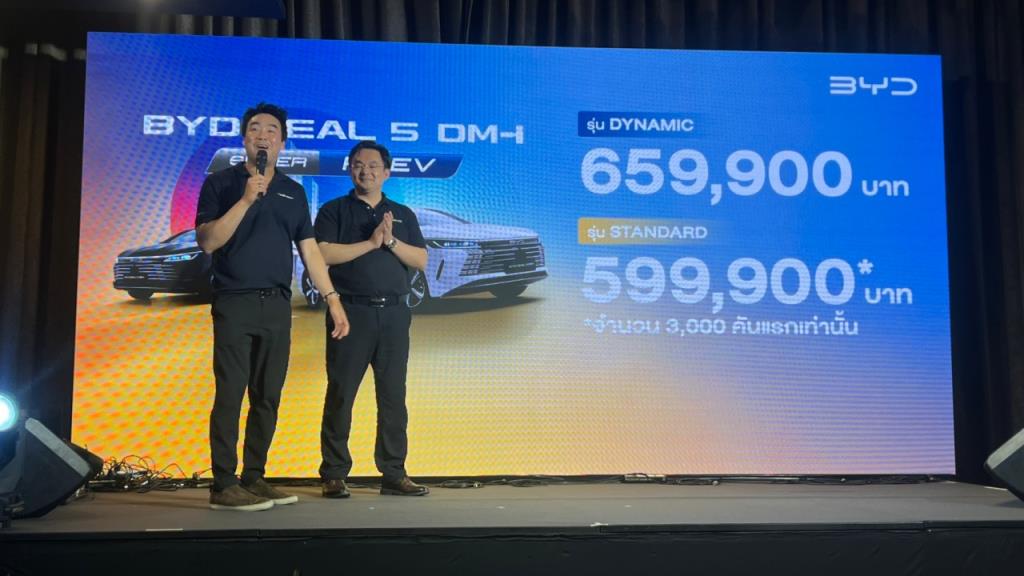 BYD SEAL 5 DM-i Super PHEV เพิ่มทางเลือกด้วยรุ่นย่อย Standard และ Dynamic พร้อมแบตเตอรี่ขนาดลดลงเหลือ 13.08 kWh ระยะทางขับขี่ไฟฟ้าล้วนไกลสุด 85 กม. (NEDC) ราคาจำหน่ายทางการเริ่มต้น 599,900 บาท (ราคารุ่น Standard จำกัดเฉพาะ 3,000 คันแรก)