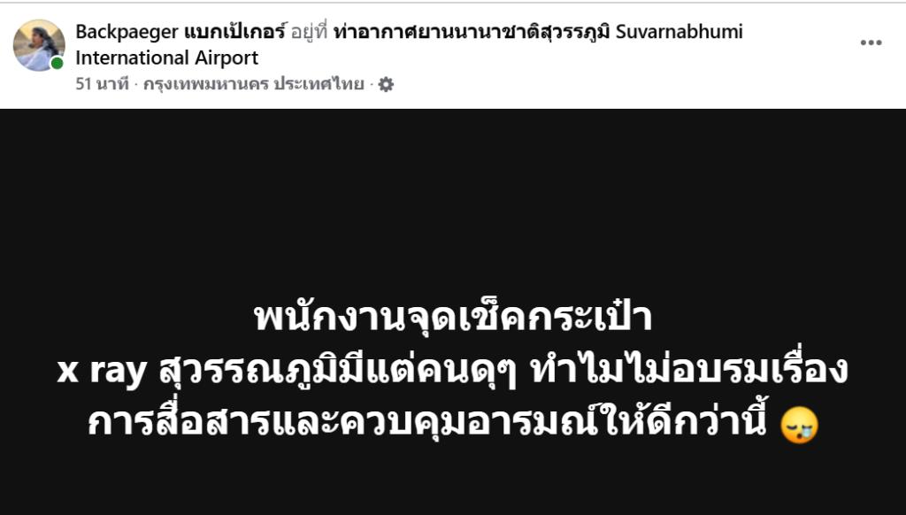 "พนักงานจุดเช็กกระเป๋า x ray สุวรรณภูมิมีแต่คนดุๆ ทำไมไม่อบรมเรื่องการสื่อสารและควบคุมอารมณ์ให้ดีกว่านี้"