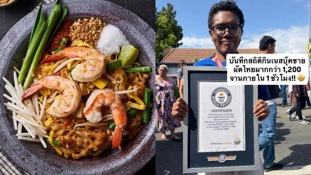 พลัง Soft Power ที่แท้จริง! สงกรานต์แอลเอปีนี้ร้อนแรงกว่าเดิม เมื่อร้านอาหารไทยในสหรัฐฯ จับมือสร้างสถิติโลกใหม่ บันทึกชื่อลง Guinness World Records ด้วยภารกิจสุดหินเสิร์ฟผัดไทย 1,300 จานใน 1 ชั่วโมง ตอกย้ำความยิ่งใหญ่ของอาหารไทยที่ครองใจชาวต่างชาติ จนกลายเป็นประวัติศาสตร์หน้าใหม่ที่คนไทยต้องภูมิใจ