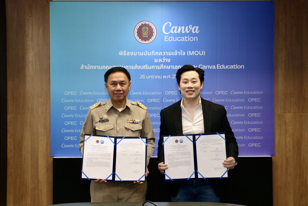Canva ต่อยอดการศึกษาไทย เปิด Canva Education ใช้ฟรี เพื่อการเรียนการสอน เผยแพร่: 26 ม.ค. 2569 18:51 ปรับปรุง: 26 ม.ค. 2569 18:51 โดย: ผู้จัดการออนไลน์ เมื่อ 26 ม.ค. 69 สำนักงานคณะกรรมการส่งเสริมการศึกษาเอกชน (สช.) ลงนามบันทึกความเข้าใจความร่วมมือ (MOU) กับ Canva เพื่อร่วมกันพัฒนาศักยภาพด้านการออกแบบ การสร้างสื่อการเรียนรู้ และประสบการณ์การเรียนรู้ดิจิทัลให้แก่เจ้าหน้าที่ ครู บุค รายละเอียด...