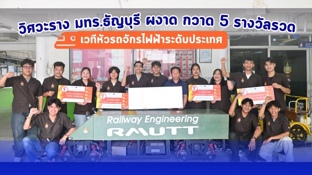 วิศวะราง มทร.ธัญบุรี ผงาด กวาด 5 รางวัลรวด เวทีหัวรถจักรไฟฟ้าระดับประเทศ ทีม "RAILWAY RMUTT" เผยแพร่: 25 ก.พ. 2569 18:29 ปรับปรุง: 25 ก.พ. 2569 18:29 โดย: ผู้จัดการออนไลน์ สร้างความภาคภูมิใจครั้งยิ่งใหญ่ให้กับคณะวิศวกรรมศาสตร์ มหาวิทยาลัยเทคโนโลยีราชมงคลธัญบุรี (มทร.ธัญบุรี) เมื่อทีมนักศึกษาวิศวกรรมระบบราง ภาควิชาวิศวกรรมเครื่องกล สร้างปรากฏการณ์ด้วยการกวาด 5 รางวัลทรงเกียรติจากการแข่งขันออกแบบแล รายละเอียด...