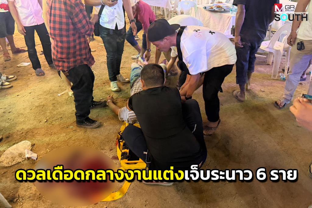 นครศรีธรรมราช – เกิดเหตุทะเลาะวิวาทกลางงานเลี้ยงงานแต่งงาน ก่อนทั้งคู่จะชักปืนออกมาดวลกันสนั่น ทำให้มีคนถูกลูกหลงบาดเจ็บรวม 6 ราย เหตุเกิดในพื้นที่ หมู่ 12 ต.โมคลาน อ.ท่าศาลา จ.นครศรีธรรมราช