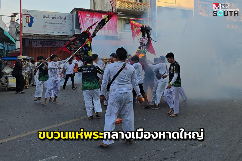 ยิ่งใหญ่! ขบวนแห่พระกลางเมืองหาดใหญ่ในงานประเพณีแห่พระสะเดาะเคราะห์ประจำปี 2569 เผยแพร่: 24 ก.พ. 2569 12:40 ปรับปรุง: 24 ก.พ. 2569 12:40 โดย: ผู้จัดการออนไลน์ ศูนย์ข่าวหาดใหญ่ – ประเพณีแห่พระสะเดาะเคราะห์ประจำปี 2569 เมืองหาดใหญ่ ท่ามกลางสายตาประชาชนและนักท่องเที่ยวต่างชาติที่ร่วมสักการะองค์พระและองค์เทพศักดิ์สิทธิ์จากศาลเจ้า 43 แห่งใน จ.สงขลา รายละเอียด... สงขลา ขบวนแห่พระ