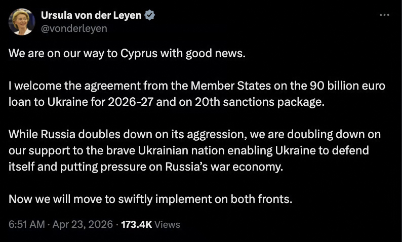 ขณะที่นัยยะในเชิงการเมือง แถลงการณ์ของคณะกรรมาธิการยุโรประบุว่ามาตรการดังกล่าวมีเป้าหมายเพื่อเพิ่มแรงกดดันให้รัสเซียกลับเข้าสู่โต๊ะเจรจาภายใต้เงื่อนไขที่ยูเครนยอมรับได้ โดยเกิดขึ้นภายหลังการหารือระหว่างนางอัวร์ซูลา ฟ็อน แดร์ ไลเอิน และนายโวโลดีมีร์ เซเลนสกี ซึ่งตอกย้ำบทบาทของยุโรปในการสนับสนุนยูเครนทั้งในมิติการทหารและเศรษฐกิจ